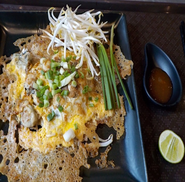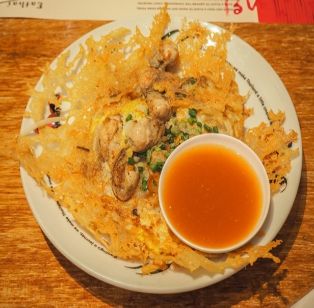 オースアン(ออส่วน)は、タイの人気な屋台料理の一つです。 主な材料はカキ(牡蠣)、卵、そしてでんぷん粉(通常はタピオカ粉や米粉)です。 カリっと焼かれた生地の中にジューシーな牡蠣が包まれており、外は香ばしく中はもっちりしています。 よくもやしと一緒に炒められ、甘辛いソースをかけて提供されます。 タイでは夜市やフードコートなどでよく見かける、庶民に愛される料理です。