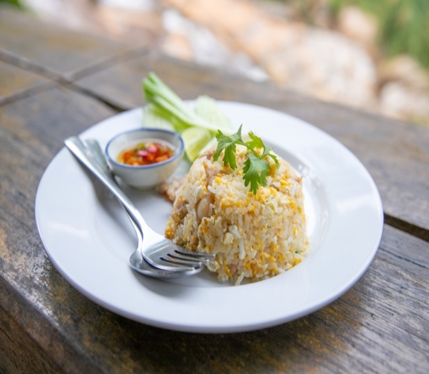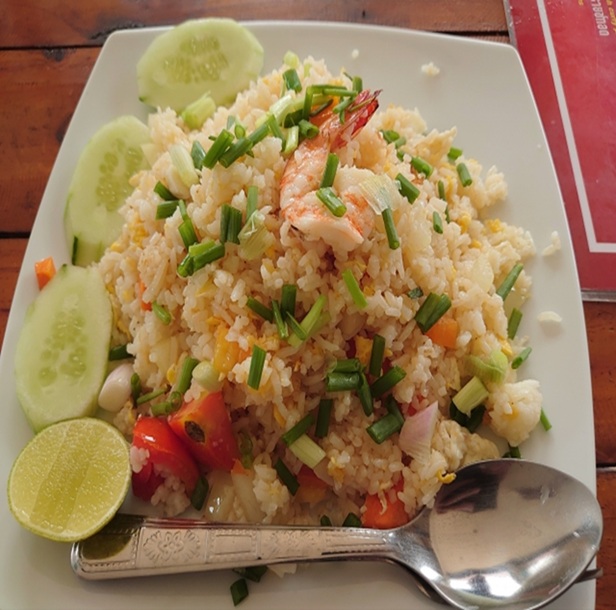 カオパット(ข้าวผัด)は、人気のある炒飯料理です。 ご飯を油で炒め、卵、肉(鶏肉、豚肉、エビなど)、野菜(ネギ、トマトなど)を加え、ナンプラーや醤油で味付けします。 一般的にライムやキュウリを添えて提供され、さっぱりとした味わいが楽しめます。 屋台やレストランなど、タイのどこでも手軽に食べることができます。 シンプルながらも深い味わいが特徴で、多くの人に愛される料理です。