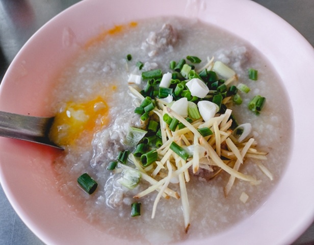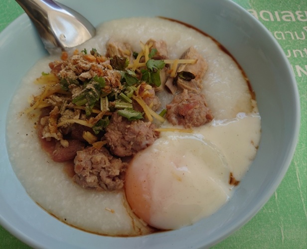 ジョーク(โจ๊ก)は、タイの代表的な朝食の一つで、お粥の一種です。 米を長時間煮込んで、とろみのあるスープ状にしたもので、消化が良く、体に優しい料理です。 通常は豚ひき肉の団子、卵、生姜、ネギなどをトッピングして食べます。 味付けにはナンプラーや胡椒が使われることが多いです。 家庭だけでなく、屋台やレストランでも広く提供されています。
