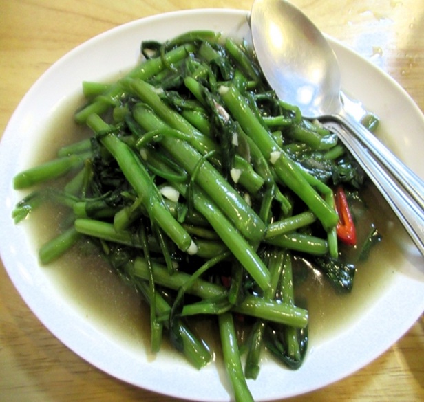 パックブン・ファイデーン(ผักบุ้งไฟแดง)は、タイの人気料理の一つです。 空心菜をにんにくや唐辛子と一緒に強火で素早く炒め、ナンプラーやオイスターソースで味付けします。 「ファイデーン」は「赤い炎」という意味で、強火で炒める様子を表しています。 シャキシャキとした食感と、ピリ辛で香ばしい味わいが特徴です。 ご飯と一緒に食べると、とても相性が良いです。