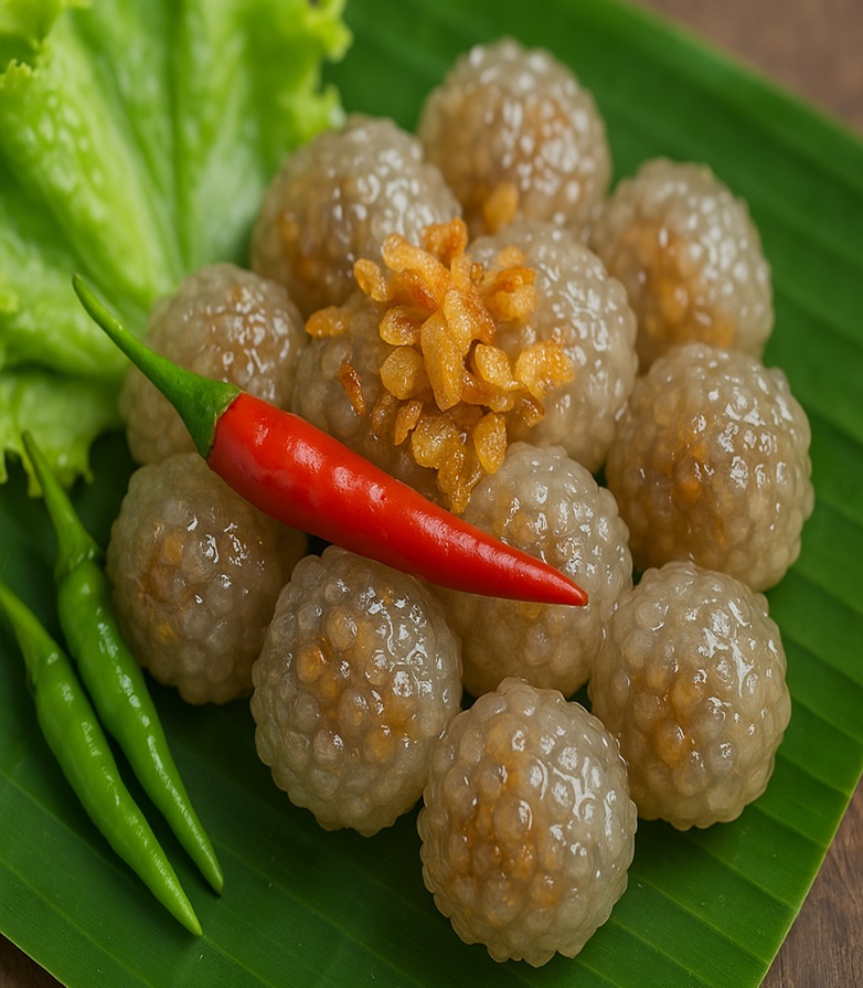 サークー(สาคู)は、タイの伝統的なデザートの一つです。 主にタピオカパールやサゴヤシから作られ、もちもちとした食感が特徴です。 甘いココナッツミルクや砂糖と一緒に食べることが多く、冷たいデザートとして人気があります。 また、サークーはデザートだけでなく、ひき肉やピーナッツを包んだ「サークーサイムー(สาคูไส้หมู)」という軽食としても親しまれています。 タイの屋台や市場でよく見かける伝統的な食べ物です。