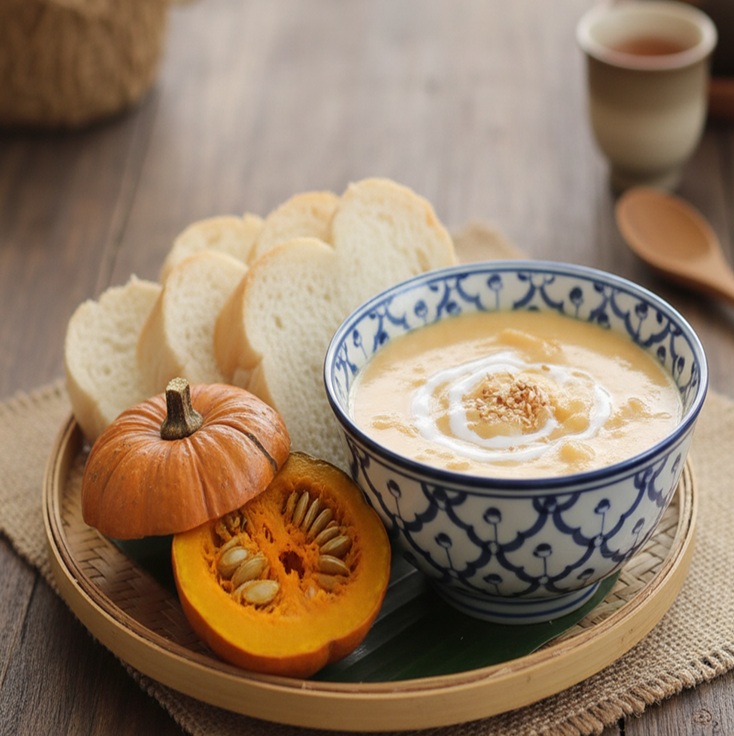 サンカヤー(สังขยา)は、ココナッツミルクと卵、砂糖を主原料とした、タイで人気の伝統的なデザートです。 日本のカスタードクリームやプリンに似ていますが、ココナッツミルク特有の豊かな風味と優しい甘さが特徴です。 パンに付けて食べるほか、もち米に乗せたり、カボチャの中に入れて蒸し固めたりするなど、様々な形で楽しまれています。 緑色のサンカヤーはパンダンリーフ(バイトゥーイ)というハーブで香り付けされたものです。