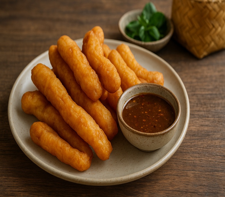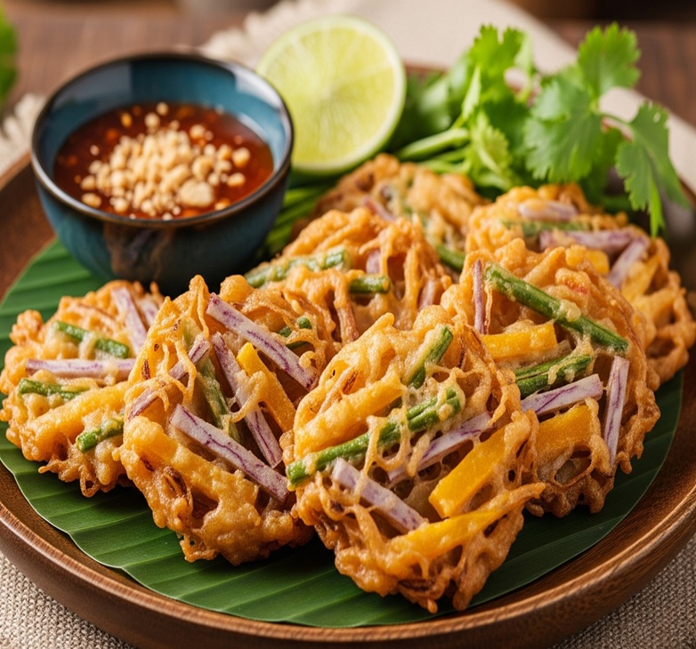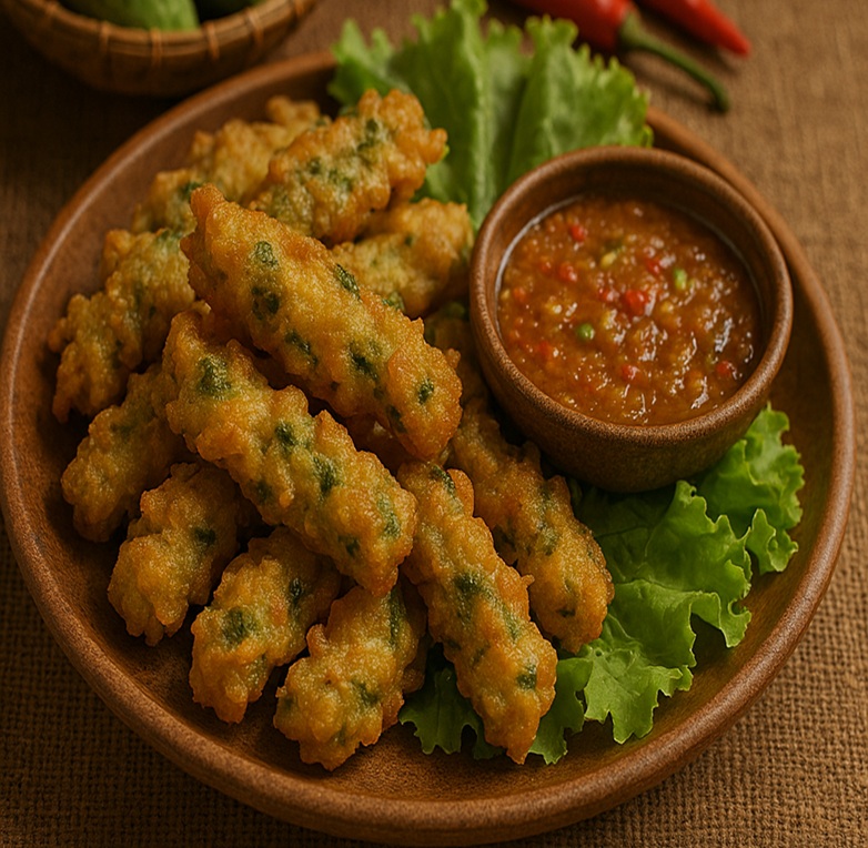 グラボーン・トート(กระบองทอด)は、タイ北部の伝統的な軽食です。 これは、千切りにしたカボチャをレッドカレーペーストやココナッツミルクで風味を付けた衣と混ぜ、カリッと揚げたものです。 外はサクサク、中はカボチャの甘みでふっくらとした食感が楽しめます。 通常、甘酸っぱくて少しスパイシーなピーナッツ入りのタレにつけて食べます。
