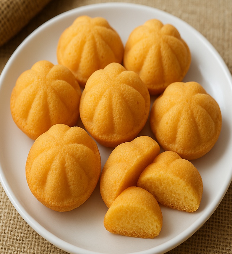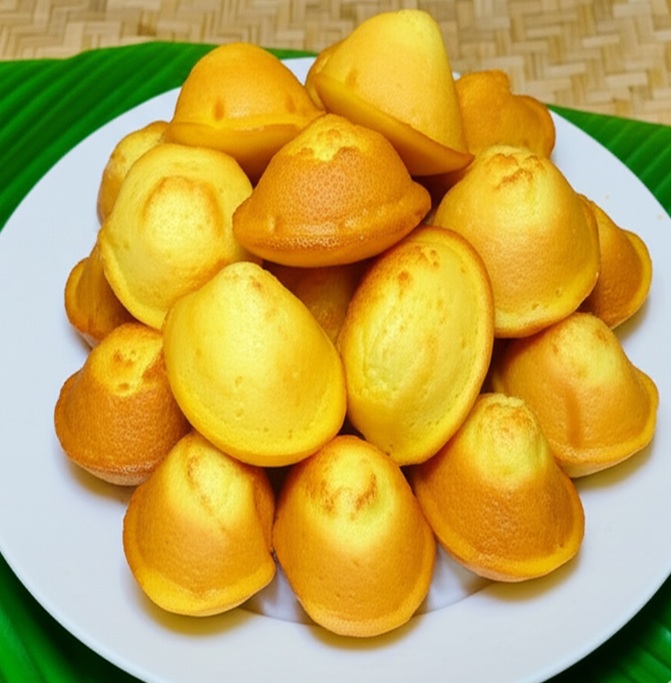 カノムカイ(ขนมไข่)は、タイの伝統的な焼き菓子です。 日本のカステラに似た食感を持っています。 卵、小麦粉、砂糖を主な材料として作られ、ふんわりと軽い口当たりが特徴です。 外は少しカリッとしていて、中は柔らかくて甘さ控えめです。 見た目は小さな丸い形で、一口サイズに焼き上げられます。 昔からお祝いごとや寺院へのお供えなどにも使われてきました。