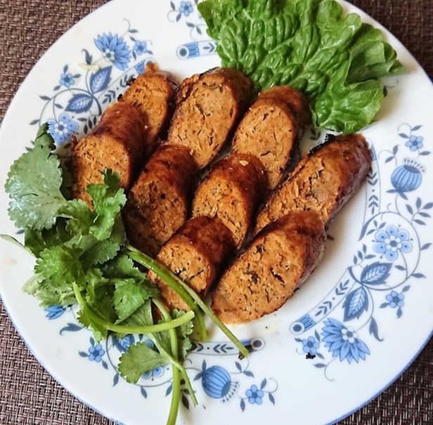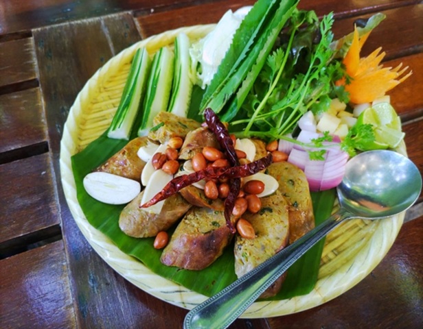 サイウア(ไส้อั่ว)は、タイ北部の伝統的なソーセージで、「チェンマイソーセージ」とも呼ばれています。 豚ひき肉に、レモングラス、こぶみかんの葉、唐辛子、ウコンといったハーブや香辛料をたっぷりと混ぜ込んで作られます。 そのため、ハーブの豊かな香りとピリッとしたスパイシーな味わいが特徴です。 通常、こんがりと焼いて提供され、もち米と一緒におかずや前菜として楽しまれています。