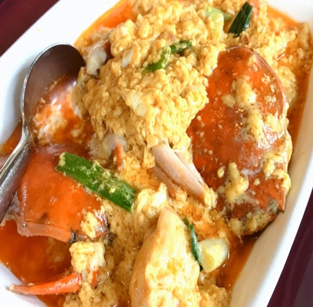 プーパッポンカリー(ปูผัดผงกระหรี่)は、タイの人気シーフード料理の一つです。 新鮮な蟹を殻付きのまま炒め、卵やカレー粉、ココナッツミルク、ナムプリックパオ(チリペースト)などを加えてクリーミーに仕上げます。 スパイシーでありながら、まろやかな甘みとコクのある味わいが特徴です。 ご飯と一緒に食べると、とても美味しく、タイ料理の中でも特に人気があります。