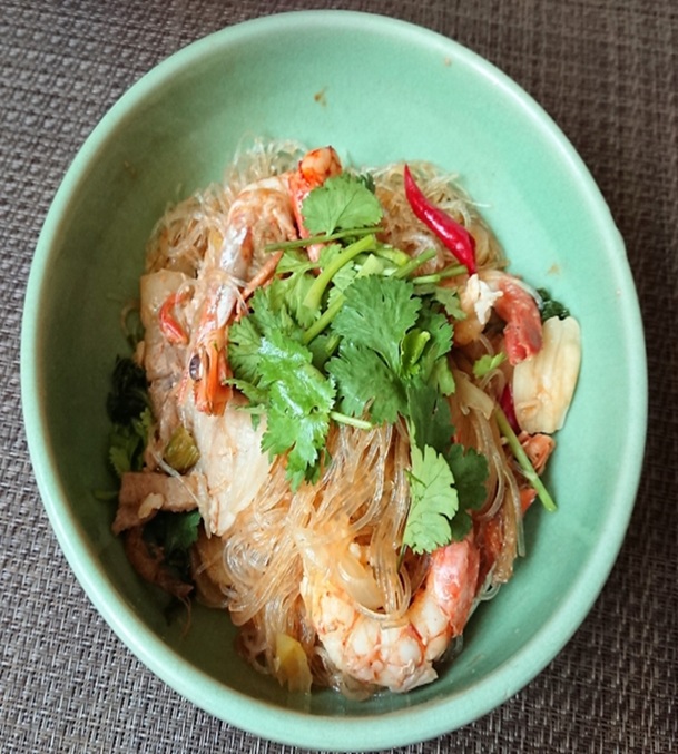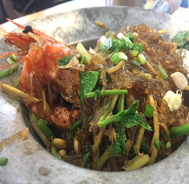 クンオップウンセン(กุ้งอบวุ้นเส้น)は、タイの人気のあるエビと春雨の蒸し焼き料理です。 エビ、春雨、ニンニク、ショウガ、コショウなどを鍋に入れ、オイスターソースやゴマ油で味付けして蒸し焼きにします。 香ばしい香りとプリプリのエビ、もちもちとした春雨が特徴です。 通常、小さな土鍋で調理され、アツアツのまま提供されます。 タイの家庭料理としても人気があり、ご飯と一緒に食べることが多いです。